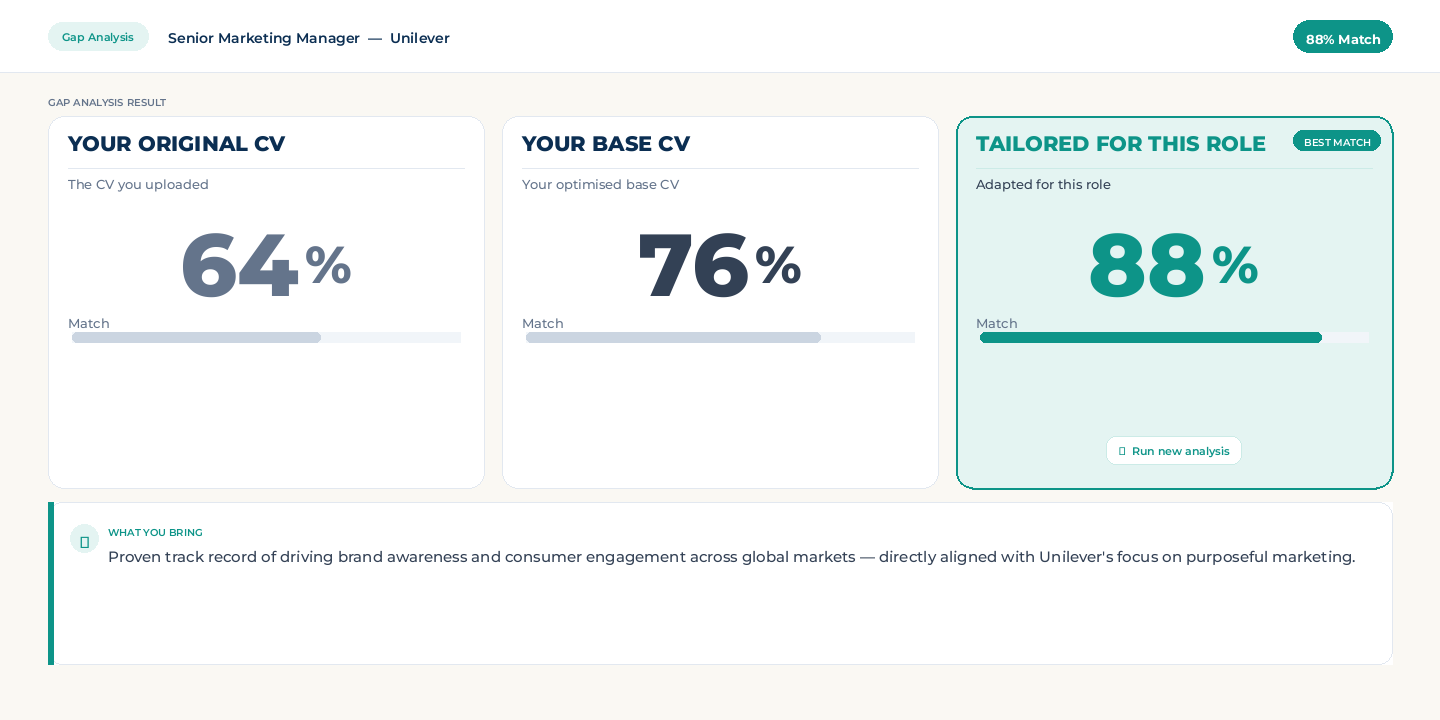 Run a gap analysis on any job ad. See exactly where you fit and what to improve.